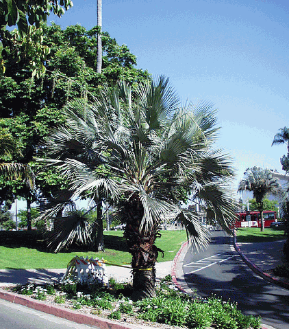 Mexican Blue Fan Palm Antioch in Medford Average Height: 20' to 30' Growth Rate: Slow Hardiness: Cool to 15° F Very nice contrasting color in landscape, drought tolerant.