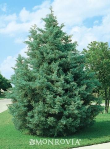 An excellent screen or . Its symmetrical pyramidal form of compact branches holds handsome blue-gray foliage. Evergreen.