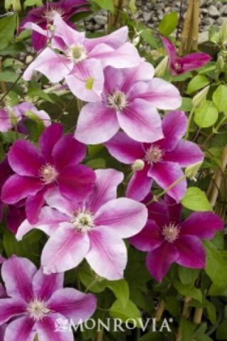 Makes a fine groundcover or climber for arbors, fences or tall shrubs. Outstanding vine with graceful foliage and brilliantly bi-colored, large blooms. Deciduous.