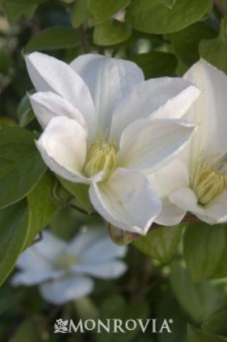 Free-flowering vine produces attractive, huge pure white blooms with light yellow stamens. Brilliant display of color that is wonderful climbing on fences, trellises, arbors.