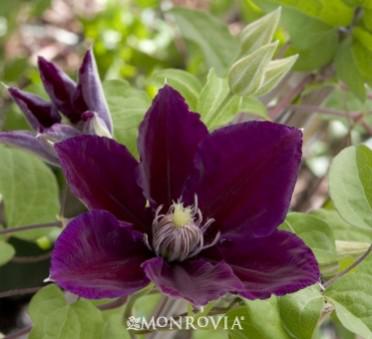 Large, rich velvety violet blooms with a deep purple-red bar give a regal feeling to arbors, trellises and pergolas. Rambles through small trees or over shrubs adding color and interest. Deciduous.