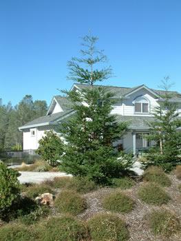 Sequoia sempervirens is a massive conifer, densely branched and pyramidical in youth, with age it loses its lower branches, retaining the pyramidal crown. Under cultivation in the east, it usually reaches 40-60' tall. The bark of this tree has been photographed often, a rich reddish brown, deeply furrowed and ridged, highly textured. Pendant branchlets of 'Aptos Blue' bear deep bluish-green needles. Flowers are inconspicuous, small cones are 3/4-1" long. It prefers moist, well drained, acidic soil, does best in areas with high atmospheric moisture. Not seriously bothered by pests. A definite specimen tree, some smaller cultivars are available. Native to the foggy coastal areas from San Francisco to southern Oregon.