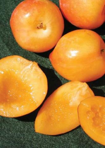 Small to medium sized red-orange colored fruit, with very sweet orange flesh. Round to heart-shaped fruit is excellent eaten fresh, dried or in desserts. Upright tree sets large crops once established. Estimated chill requirement: 400 hours or less. Pollenizer required.